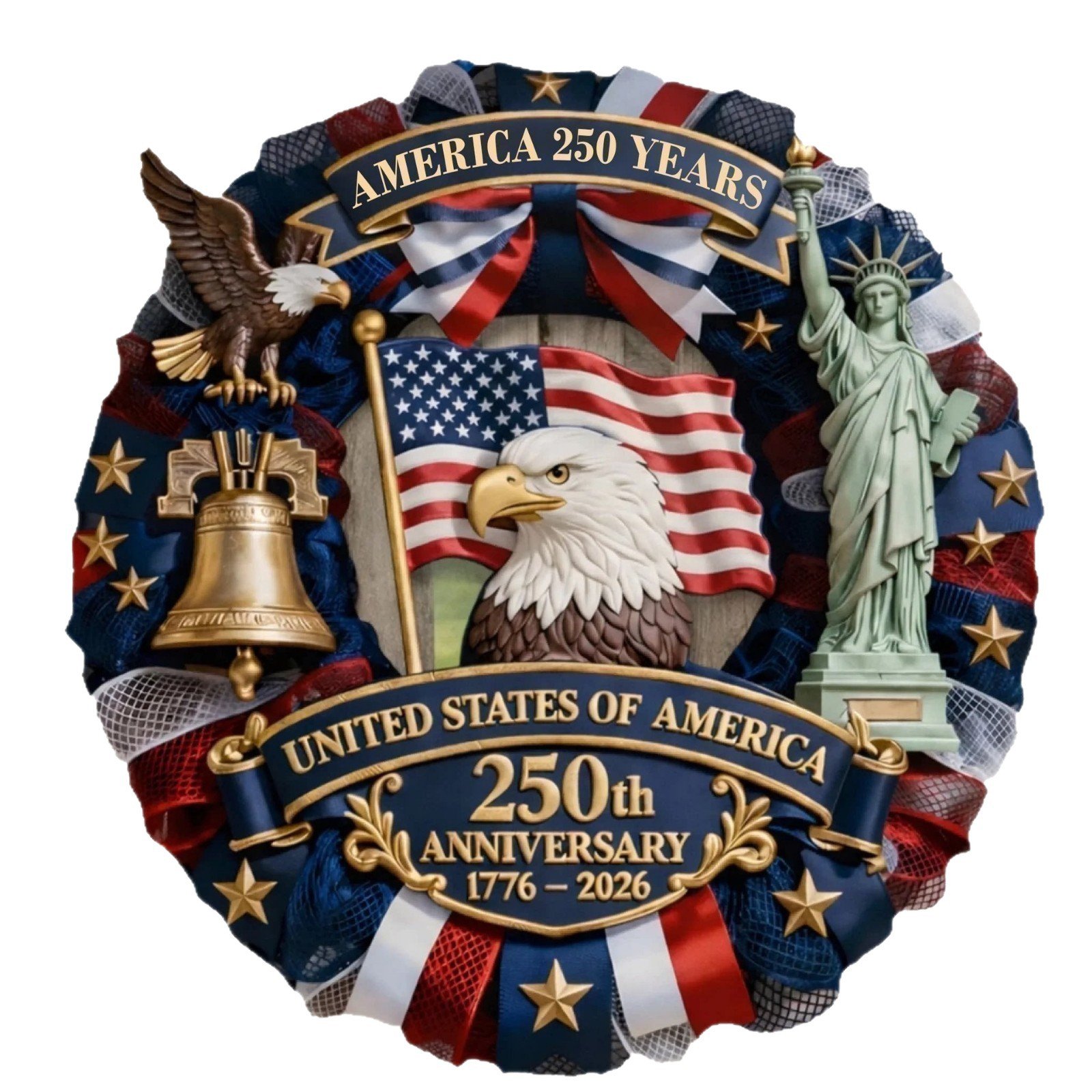 Wooden patriotic wreath for Independence Day. 10 styles × 3 sizes. Perfect for home & door decoration.